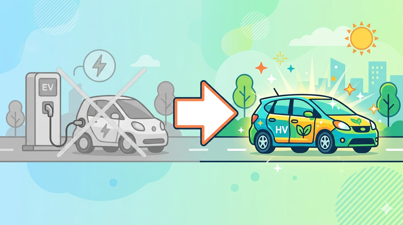 ハイブリッドって、エンジンもモーターも両方使えるわけで、ガソリン車の良さとEVの良さのいいとこ取りですよね。充電スタンド探さなくていいし、エンジン音もするし(ここ大事)、燃費もいい。いやもう最強じゃん。